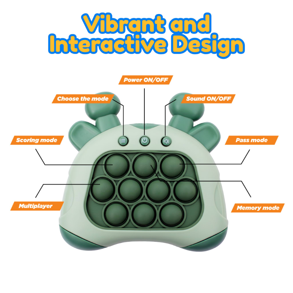 Multiple modes in one toy: timed scoring, memory patterns, pass-the-pop group play, and head-to-head battles. Intuitive press-and-release operation and satisfying LED flashes make every pop exciting.